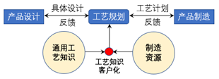Process design is one of the primary tasks of the technical department in manufacturing enterprises. Its quality and efficiency significantly impact production organization, product quality, cost, productivity, and production cycle. As a highly complex task, process design encompasses various functional requirements with different natures, such as analysis, selection, planning, and optimization. It involves extensive knowledge and information, closely correlates with specific production environments (e.g., air humidity, ambient temperature, equipment automation levels), and heavily relies on experiential knowledge. The connotation of process design (Figure 1) can be summarized as follows: ① A decision-making process that considers all conditions/constraints in formulating process plans, involving diverse decisions; ② An activity that integrates manufacturing process knowledge with specific designs under the constraints of workshop or factory resources, preparing detailed operational instructions; ③ A bridge connecting product design and manufacturing.